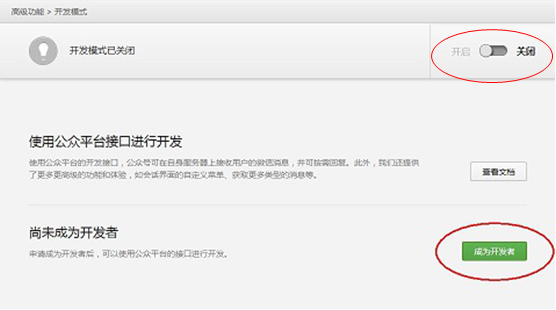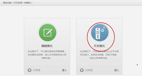 5、提交配置信息后,开启开发模式。