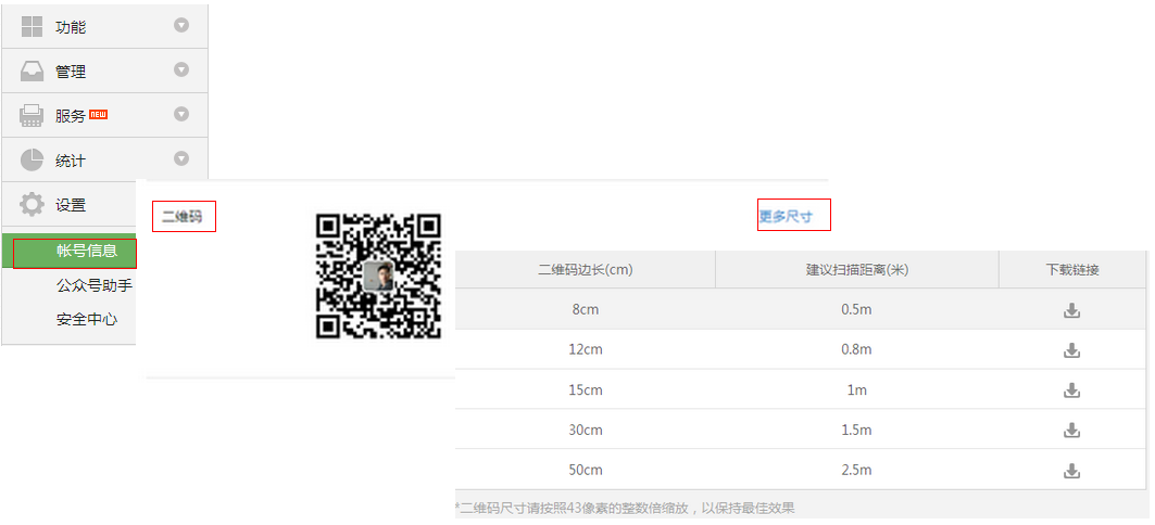 6、在商家后台上传微信公众号二维码,首先到微信公众平台账号信息中下载我的二维码图片。并点击上传微信二维码,上传正确的微信二维码。